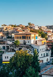 Mustafapaşa, formerly known as Sinasos, is a small town with 1,300 inhabitants and stone buildings set along the feet of five surrounding hills. Mustafapaşa resembles an open-air museum with its civil architecture consisting of churches, mosques, and stone houses with carved and ornamented facades, balconies, and windows – all unique examples of the mastery of local stone cutters. Built in harmony with the region’s topography and climate, and presenting fine examples of stonemasonry and wood craftmanship, these 19th-century houses bear the traces of a brilliant culture. Here, you can get away from the crowds and spend time in an authentic, real-life Cappadocian town.
