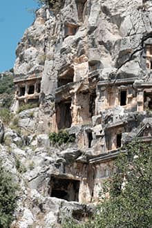 Kale Üçağız'dan bir taş atımı uzaklıkta Myra antik kentini keşfedeceksiniz. İyi korunmuş kaya mezarlarıyla ünlü Myra, Roma ve Bizans dönemlerine büyüleyici bir bakış sunuyor. Antik uygarlıkların işçiliğini hayranlıkla incelerken mezarları süsleyen girift oymaları ve mimari harikaları keşfedin.
